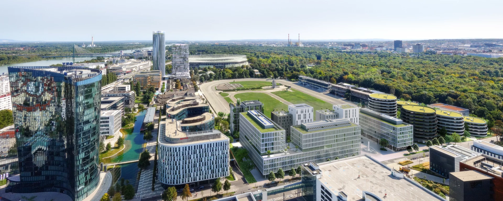 So far, 7,000 people live and work there, surrounded by 13,000 square metres of green space and a 5,000-square-metre artificial lake. On a total area of 160,000 square metres, the property features office and commercial space, flats and student apartments as well as hotels with a gross floor area of 320,000 square metres.
